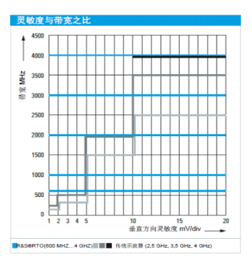 一般來講,當(dāng)用示波器在低于10 mV/div 的檔位進(jìn)行測(cè)量時(shí),通常會(huì)通過限制測(cè)量帶寬的方法將噪聲盡可能地壓低。而 R&S RTO卻不同:它甚至可以在最敏感的小信號(hào)檔位提供全帶寬,并且用超過 7位有效位的 A/D 轉(zhuǎn)換器來進(jìn)行信號(hào)量化。