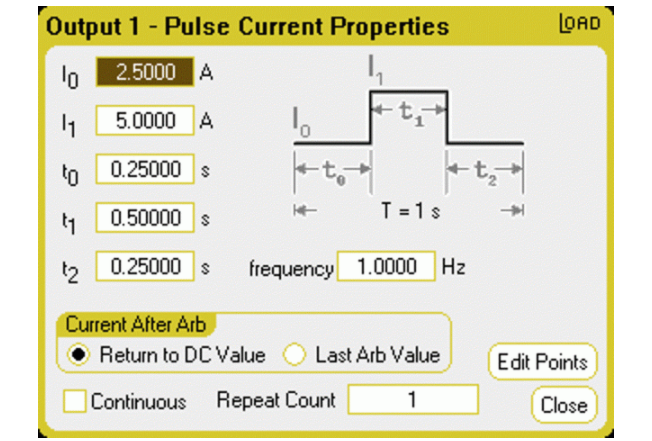 配置好負(fù)載后,下一步將是創(chuàng)建一個(gè)波形(步長(zhǎng)或脈沖),以生成瞬態(tài)的方式為電源供電。KeysightN6700系列具有一系列內(nèi)置波形,可簡(jiǎn)化此操作。只需描述幾個(gè)點(diǎn)就可以生成動(dòng)態(tài)負(fù)載。當(dāng)電流值從50%變?yōu)?00%時(shí),階躍波形會(huì)產(chǎn)生一個(gè)瞬變,脈沖會(huì)產(chǎn)生兩個(gè)瞬變,每個(gè)邊沿一個(gè)。參見(jiàn)圖3。