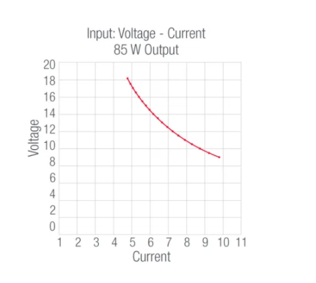 考慮到其性質(zhì),轉(zhuǎn)換器需要的電流限制不止一個(gè)。轉(zhuǎn)換器在較低的電源電壓下需要更多的電流,而在較高的電壓下需要更少的電流。設(shè)置一個(gè)單一的限值來(lái)處理低壓下所需的大電流,將無(wú)法在較高的電源電壓下保護(hù)轉(zhuǎn)換器。在較高的電壓下,轉(zhuǎn)換器會(huì)在跳閘電流保護(hù)之前承受過(guò)多的功率。關(guān)鍵是選擇具有過(guò)功率保護(hù)(OPP)或輸出列表功能的電源。