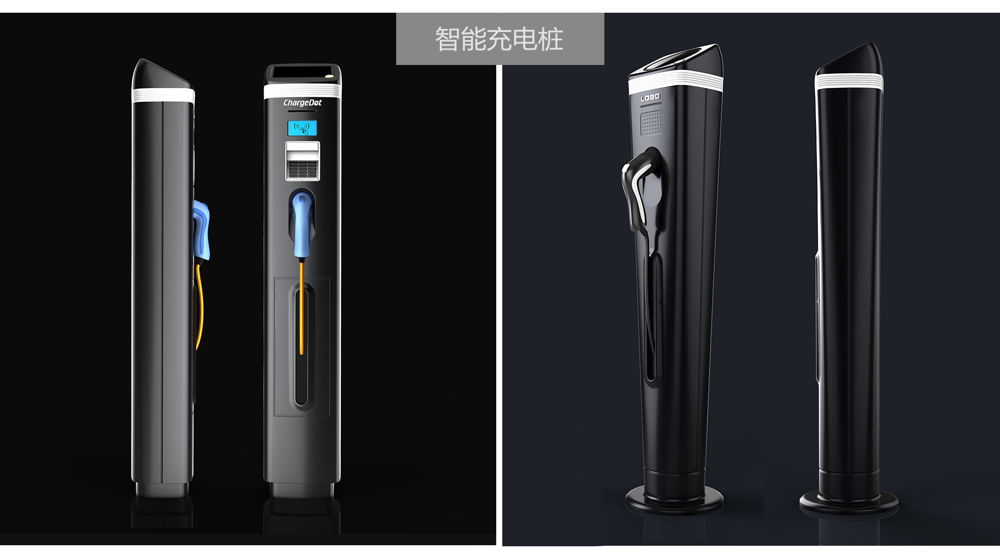 外觀設(shè)計上,充電樁設(shè)計趨向于更具科技感、未來感以及親和力。其造型設(shè)計在實(shí)現(xiàn)基本功能的基礎(chǔ),盡可能的縮小占地空間,看上去顯得更加小巧靈動,并給人很強(qiáng)的立體感,使其更加適用于實(shí)際運(yùn)用中。設(shè)計師更樂于運(yùn)用流暢的曲線,賦予充電樁時尚科技的設(shè)計語言及色彩,并在設(shè)計中融入人的情感元素,充電樁形態(tài)在表達(dá)出科技感的同時,也同樣給人親和貼切感,讓其更加貼合用戶的理想形態(tài)。