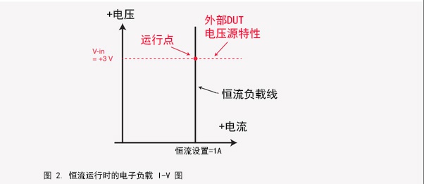 參見(jiàn)圖2。工作點(diǎn)是(電壓和電流)設(shè)定點(diǎn),其中電池輸出電壓與電子負(fù)載的編程恒流負(fù)載線相交。