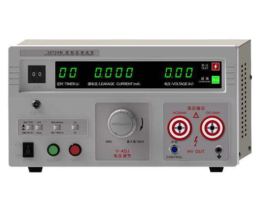 其工作原理是:把一個(gè)高于正常工作的電壓加在被測設(shè)備的絕緣體上,持續(xù)一段規(guī)定的時(shí)間,加在上面的電壓就只會產(chǎn)生很小的漏電流,則絕緣性能比較好。程控電源模塊、信號采集調(diào)理模塊和計(jì)算機(jī)控制系統(tǒng)三個(gè)模塊組成測試系統(tǒng)。選擇耐壓儀的2個(gè)指標(biāo):最大輸出電壓值及最大報(bào)警電流值的數(shù)值。