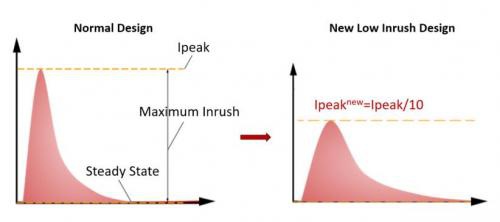 通過討論,我們知道,減小浪涌電流的最佳方式是減小峰值電流(Ipeak),或減小脈沖持續(xù)時(shí)長。而優(yōu)特電源的解決方案是將Ipeak降低到非常低的水平,并增加持續(xù)時(shí)長,這樣就不用參考K因子的值來計(jì)算對應(yīng)斷路器的數(shù)量了。
