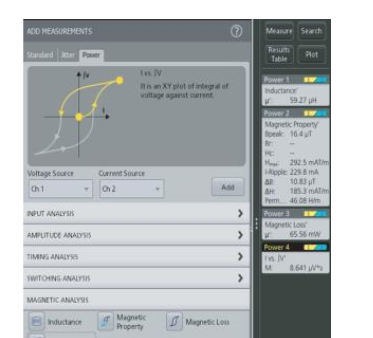 5-PWR磁屬性測(cè)量給出了結(jié)構(gòu)設(shè)計(jì)中的磁性器件的磁滯圖,檢查磁性器件是否飽和,因?yàn)槠鋾?huì)導(dǎo)致電源不穩(wěn)定。