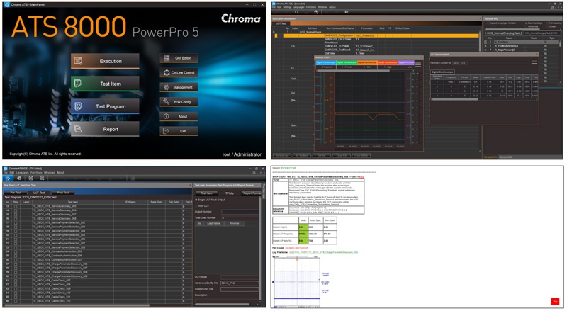 Chroma已提供充電樁的功能及兼容性測試系統(tǒng)給國內(nèi)外各大檢測中心。也有不少充電樁廠采用來做工廠產(chǎn)線終端(End of Line)的測試。除了測試充電程序與安全保護外,功率分配測試是多槍充電樁產(chǎn)品重要的檢測項目之一。Chroma EVSE測試解決方案搭配全新軟件平臺PowerPro5–新增加多線程測項的功能,可同時模擬最多4臺相同或不同地區(qū)通訊協(xié)議電動車,包括GB/T,CCS,和CHAdeMO的標準。也能依據(jù)測試條件控制充電樁進行多槍同時輸出,甚至不同時間插入,達成功率分配測試。讓測試情境更貼近實際充電行為,且相較于以往單槍各別測試,可大幅縮短整體測試時間達40%,有效的擴大測試量能。