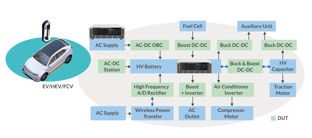 62000D雙向直流電源+能源回饋式負載+電池模擬,符合電動車電力轉(zhuǎn)換測試