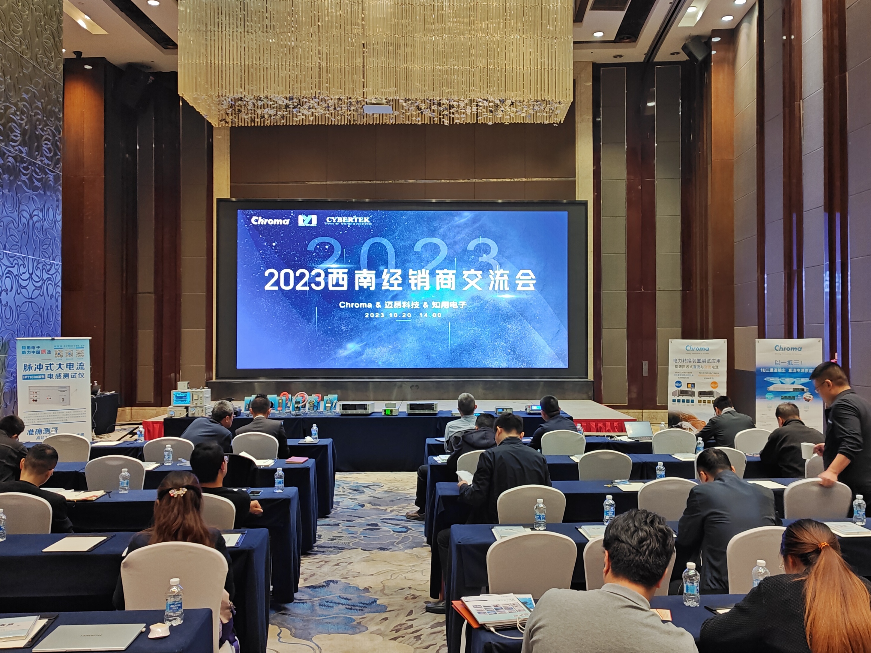 2023年10月20日下午,在成都東大明宇豪雅酒店成功舉辦了由Chroma、深圳市邁昂科技有限公司和深圳市知用電子有限公司聯(lián)合主辦的西南經(jīng)銷商交流會(huì)。Chroma大中華區(qū)域市場(chǎng)推進(jìn)中心總監(jiān)黃麟硯、Chroma量測(cè)儀器事業(yè)部總監(jiān)郭政翎、知用電子樊小明博士、邁昂科技總經(jīng)理程言攜公司下屬成員與與會(huì)經(jīng)銷商齊聚一堂,共同分享產(chǎn)品新機(jī)遇和發(fā)展新思路。