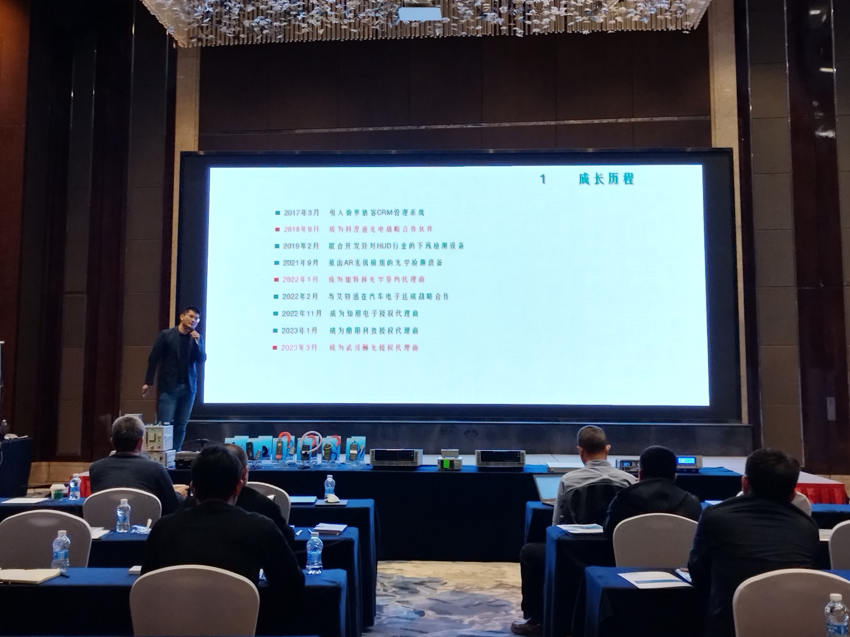 接下來(lái),邁昂科技總經(jīng)理程言分享了邁昂光學(xué)產(chǎn)品。他介紹了邁昂品牌和團(tuán)隊(duì),并詳細(xì)介紹了光學(xué)產(chǎn)品在各個(gè)行業(yè)的應(yīng)用。這次分享增進(jìn)了與會(huì)者對(duì)邁昂團(tuán)隊(duì)及其產(chǎn)品的了解,同時(shí)也表達(dá)了對(duì)西南市場(chǎng)和經(jīng)銷商伙伴的重視。