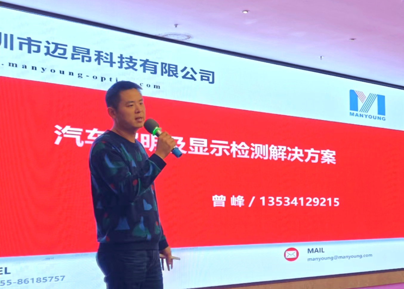 會(huì)議最后,邁昂科技光學(xué)銷售總監(jiān)曾峰先生帶來汽車照明及顯示檢測解決方案,分享了車燈測試方案、智能座艙測試方案、激光雷達(dá)測試、材料光色測試等相關(guān)產(chǎn)品方案與實(shí)例,充分圍繞客戶痛點(diǎn),以差異化的價(jià)值,為客戶提供從頂層規(guī)劃到落地實(shí)施的整體解決方案。期待未來與各位經(jīng)銷商朋友們搭建聯(lián)系,深化戰(zhàn)略合作。