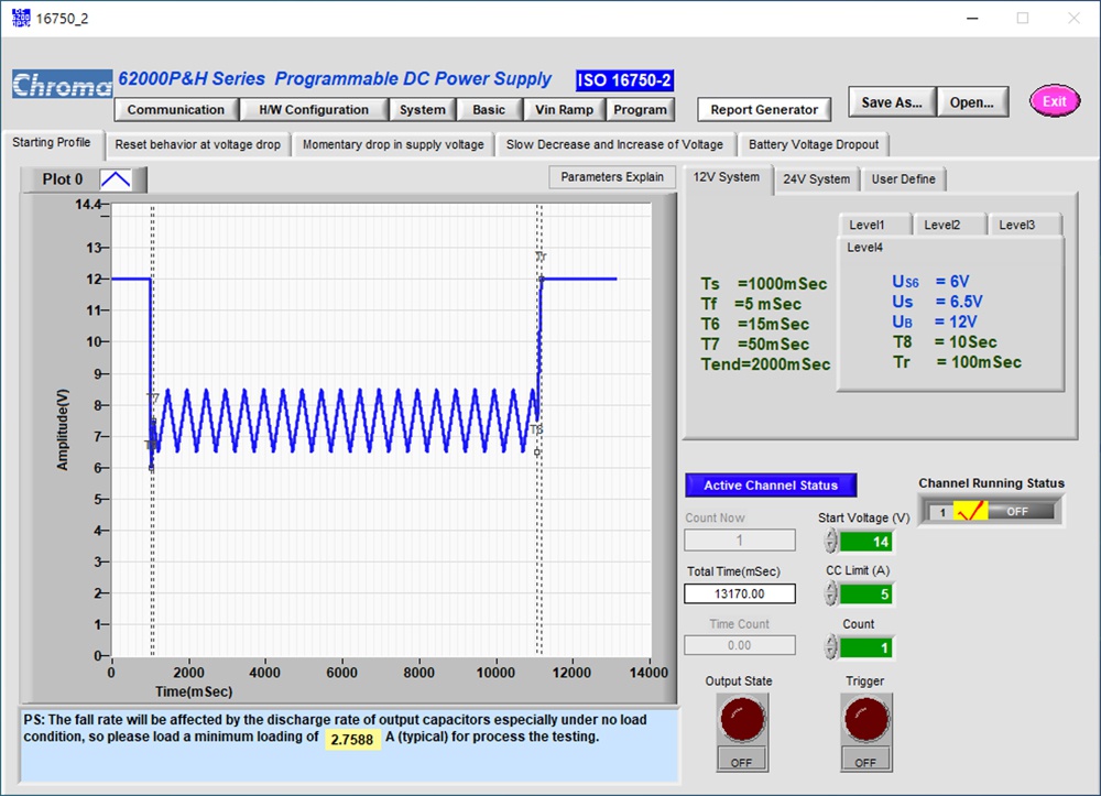 ▲Chroma 62000P & Chroma 62000H Series 圖形化操作軟件 (ISO16750-2測試)