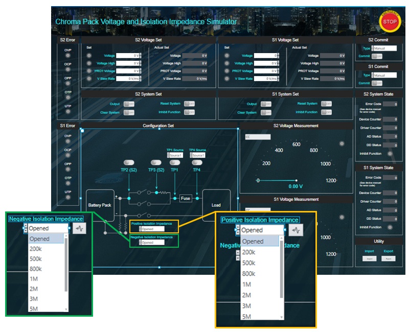 Chroma 8630電池管理系統(tǒng)功率級硬件在環(huán)測試臺架系統(tǒng)提供電池組電壓和隔離阻抗仿真器(Pack Voltage and Isolation Impedance Simulator)讓用戶能夠輕易完成上述工況測試。可程控化的電壓仿真器讓用戶可輕易仿真多種因連接不良所造成的壓降情況,模塊化特性更能靈活的依據(jù)不同的產(chǎn)品設(shè)計及特性,在短時間內(nèi)對各個點位進行測試。此功能內(nèi)建九個電阻檔位(Opened、200K、500K、800K、1M、2M、3M、5M以及10M奧姆)的選擇并透過可程序模塊化的切換方式,以簡單、有效和快速的彈性調(diào)整,滿足不同規(guī)格產(chǎn)品測試的需要,讓測試方案的經(jīng)濟效益發(fā)揮至最大。