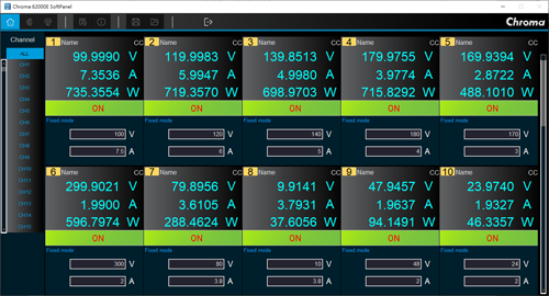 62000E系列機(jī)型提供可遠(yuǎn)程、多通道實時監(jiān)控的用戶圖形化操作軟件Softpanel,工程人員可輕易地進(jìn)行自動程序步階控制(100個步階停留時間,范圍為10ms-65535s),以控制設(shè)備的輸出電壓、電流與自動化測試應(yīng)用的I/O訊號輸出,并可進(jìn)行長時間之量測與紀(jì)錄數(shù)據(jù),特別適用于車用組件長時間、周期性的壽命測試,且有助于產(chǎn)品的質(zhì)量控管與分析。