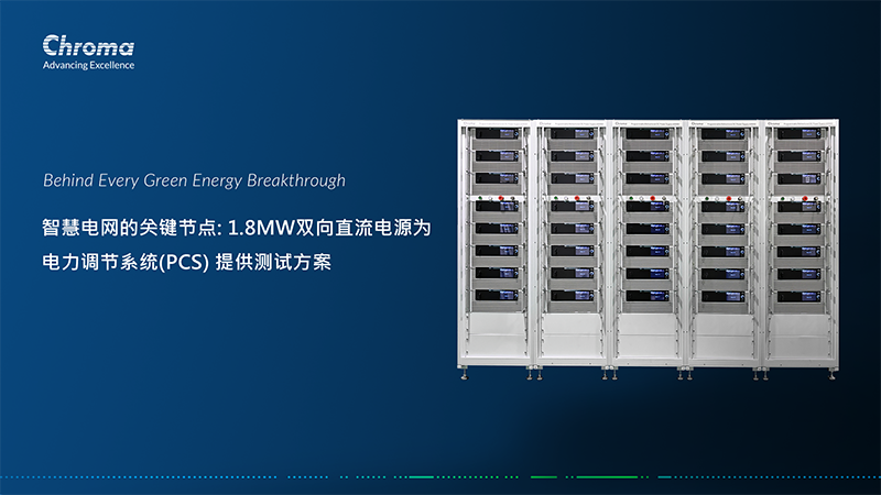在能源多樣化與電網(wǎng)智慧化的推進(jìn)下,PCS承擔(dān)的不只是電能轉(zhuǎn)換,更是整個(gè)智能電網(wǎng)穩(wěn)定與效率的關(guān)鍵角色。Chroma 1.8MW雙向直流電源測(cè)試方案,將為您的下一代PCS提供全方位支持,從研發(fā)到生產(chǎn)、從模擬到實(shí)測(cè),幫助您加速創(chuàng)新、縮短上市時(shí)間。