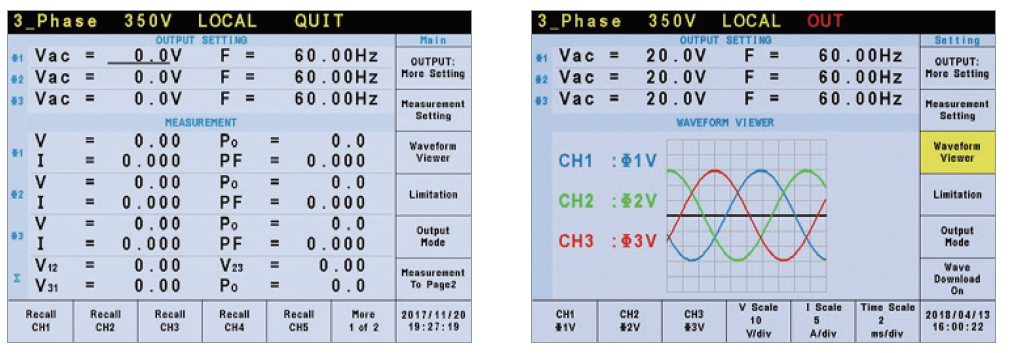 Chroma 61507/61508/61509及61511/61512機種提供選擇單相或三相輸出功能,使用者可以經由前面板或遠端控制選擇單相或三相輸出模式。即使設置在單相輸出模式,仍然可以提供全功率輸出的能力,不需擔心輸出功率規(guī)格會有遞減的情形。