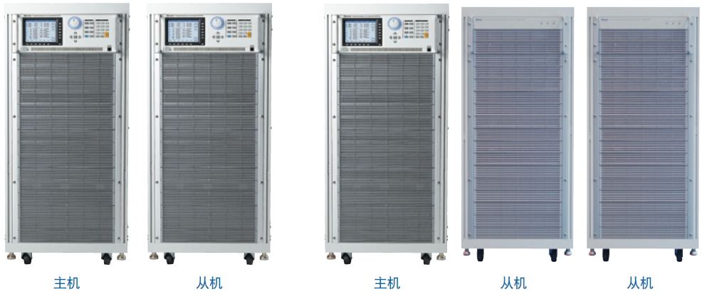 Chroma 61500系列可編程交流電源供應器可經由(Master/Slave)并聯(lián)輸出模式以達成使用者對于高功率的需求。其中61501/61502/61503/61504/61505機種無提供并聯(lián)功能;61507/61508/61509機種以同功率系列機種(即61507/61508/61509/61607/61608/61609)互相搭配且最多可并聯(lián)臺數(shù)為2臺;為滿足更大的功率需求,61509及61609等6kVA機種可進一步達到3至5臺單機(Master/Slave)并聯(lián),且兩款機種可混合搭配,實現(xiàn)18kVA、24kVA、30kVA等大功率輸出功能。 (3kVA、4.5kVA機種不支援3臺以上并聯(lián)功能) |