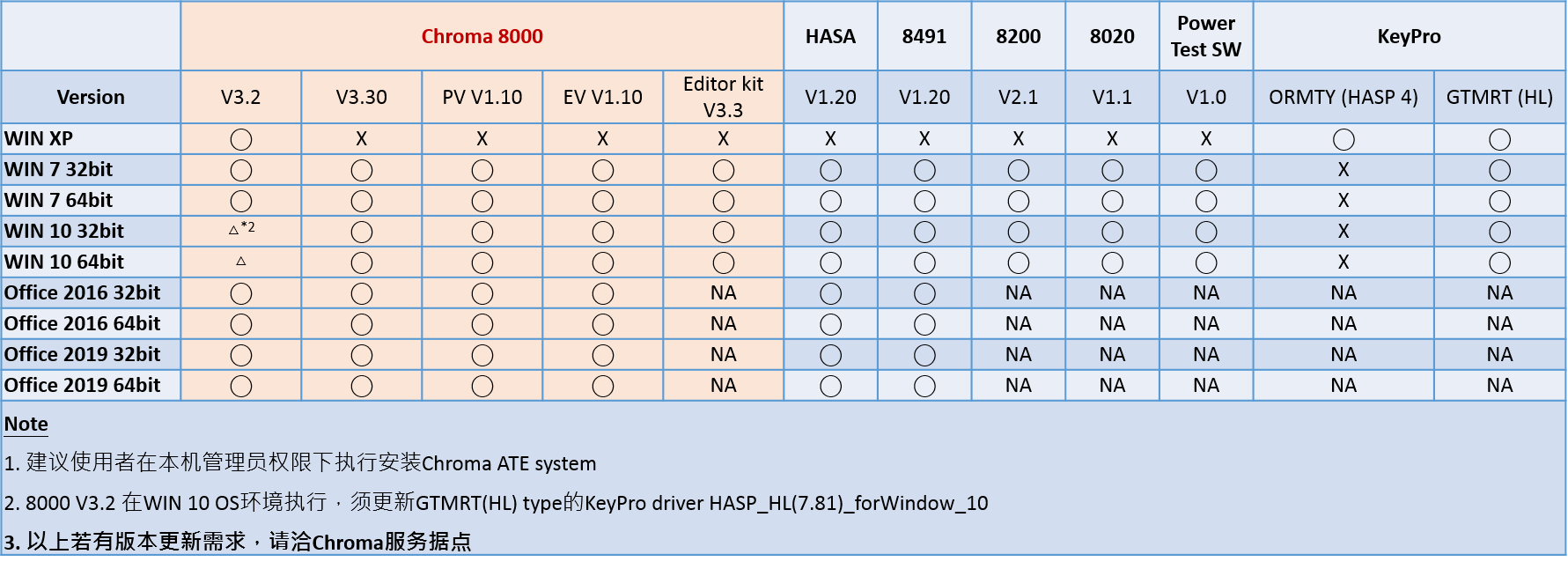 電源自動測試系統(tǒng)軟件版本與Windows版本對照表