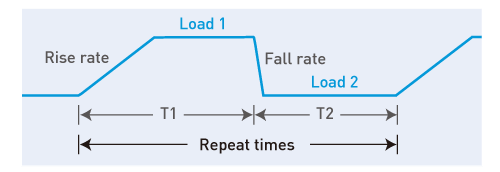 - 動(dòng)態(tài)負(fù)載可編程的參數(shù):電流高/低準(zhǔn)位、T1/T2、爬升率/下降率與執(zhí)行次數(shù)