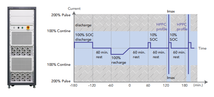 車(chē)用電池基于國(guó)際測(cè)試標(biāo)準(zhǔn)進(jìn)行功率能力測(cè)試與行駛模擬來(lái)評(píng)價(jià)電池特性,高倍率電流或功率的測(cè)試參數(shù)是基于電池操作條件(如BEV、PHEV與HEV)而制定,其輸出時(shí)間皆在30S以?xún)?nèi),為其購(gòu)置滿功率設(shè)備成為無(wú)形的冗余支出,Chroma 17010H不僅提供200%的脈沖電流與功率輸出能力,更能有效降低設(shè)備成本與設(shè)備空間。
