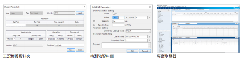 Battery Lab Expert(Battery LEx)是專(zhuān)為電池芯測(cè)試所開(kāi)發(fā)的多功能軟件平臺(tái),綜合以下三大特色及多項(xiàng)應(yīng)用功能。