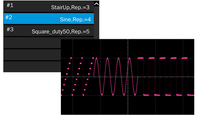 分段編輯和播放 提供把最高1024段任意波無縫拼接的能力,每段波形可單獨設(shè)置重復次數(shù),最高次數(shù)65535次。這種模式在切換任意波時直接從前一段的最后一個點跳轉(zhuǎn)到后一段的第一個點,不會產(chǎn)生空閑電平,適用于對波形切換要求很高的場合。