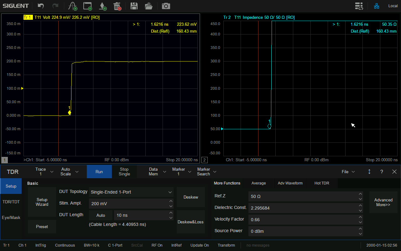 SNA5000X系列支持TDR時域反射計測量功能,可在時域?qū)鬏斁€的特征阻抗,時延等參數(shù)進(jìn)行分析。