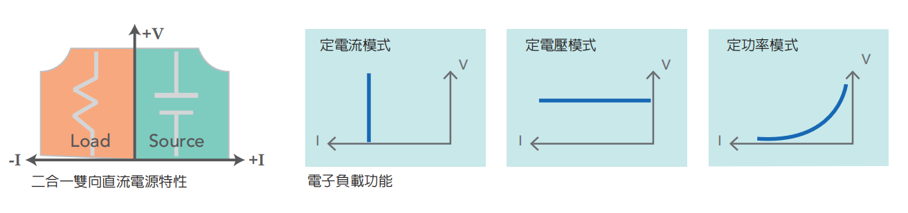 62000D系列為雙向拓?fù)潆娫醇軜?gòu)設(shè)計(jì),提供兩象限為正電壓/正電流及正電壓/負(fù)電流操作范圍,可做為直流電源輸出,亦可做為直流負(fù)載拉載電流操作,并且將吸收的能量回饋至電網(wǎng),轉(zhuǎn)換效率高達(dá)93%,此二合一雙向直流電源兼具能源回饋式負(fù)載,可操作于定電壓、定電流、定功率工作模式,相較于傳統(tǒng)電源及負(fù)載,具有體積小、節(jié)省能源損耗并散熱、測(cè)試簡(jiǎn)便等優(yōu)勢(shì)。