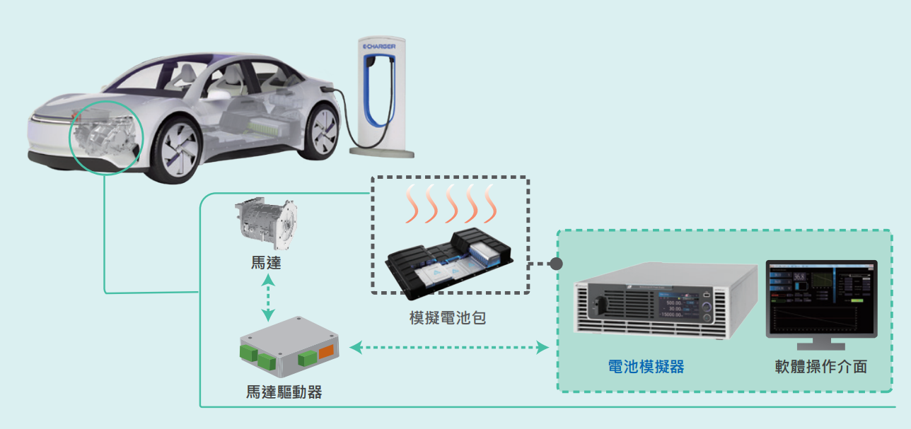 62000D系列雙向電源設(shè)計(jì)可搭配電池模擬軟件(Battery Simulator SoftPanel)成為一電池模擬器,具有可模擬操作于不同電池電量(SOC)條件或加載特定的電池特性V-I曲線,進(jìn)行評(píng)價(jià)測(cè)試待測(cè)物(電力轉(zhuǎn)換裝置)做充電或放電的電池模擬使用,適用于車載充電器、儲(chǔ)能裝置或馬達(dá)驅(qū)動(dòng)器等產(chǎn)品測(cè)試。