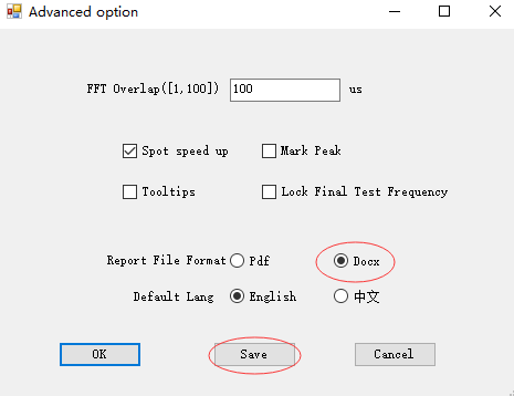 選擇“Make Report”,會(huì)自動(dòng)生成 PDF 形式的報(bào)告??梢员4娴街鳈C(jī)或者通過 USB 接口存儲(chǔ)到 U 盤中。也可點(diǎn)擊接收機(jī)模式下的主菜單中的快捷鍵“Report”直接生成報(bào)告。另外也可以生成 word 版的報(bào)告(前提是主機(jī)需要安裝 WPS 或者word),點(diǎn)擊 Advanced——Advancedoption 中報(bào)告文件格式選擇 Docx,點(diǎn)擊 Save 后,下次開機(jī)啟動(dòng)自動(dòng)生成 word 版測試報(bào)告。