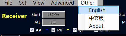 最大值保持掃描:點(diǎn)擊 Scan,會(huì)執(zhí)行連續(xù)掃描操作,并保持最大值顯示,通過 Stop 按鍵停止掃描。