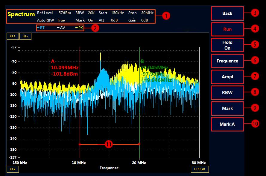 備注:用戶可以在雙擊鼠標(biāo)在,屏幕下方添加自己需要的頻點(diǎn)。(不支持在放大模式雙擊)