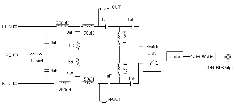 EM5040C 單線 V 型人工電源網(wǎng)絡(luò)如下圖