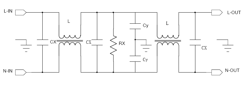 下圖是一個(gè)典型的二級(jí) EMI 濾波器。
