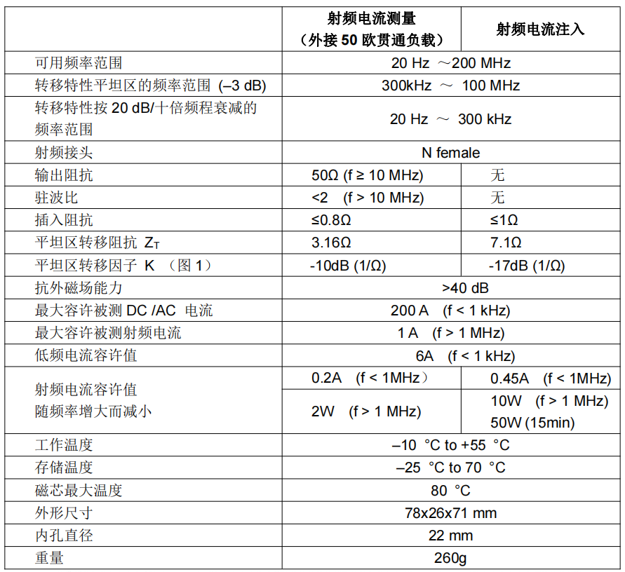 EMI 接收探頭主要用于 20Hz 到 200MHz 的 EMI 干擾測(cè)量和屏蔽效果測(cè)量。具有 300kHz 到100MHz 平坦的頻率響應(yīng)曲線,常用于夾在被測(cè)設(shè)備的電源線或者控制線上,測(cè)量干擾信號(hào)電流的大小。電流探頭的射頻輸出電壓正比于被測(cè)干擾信號(hào)電流的大小??梢苑浅7奖愕貖A在被測(cè)導(dǎo)線上,用在那些不能使用人工電源網(wǎng)絡(luò)的 EMI 測(cè)量場(chǎng)合(如電流太大或接線困難等)。本探頭符合 CISPR 16-1-2 標(biāo)準(zhǔn)要求。