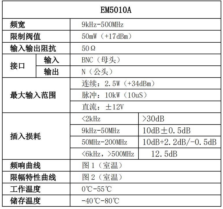 EM5010A 瞬態(tài)限幅器具有瞬態(tài)限幅功能。在 EMI 測量中,經(jīng)常有意外過載情況發(fā)生,瞬態(tài)限幅器用于前端電路保護,防止損壞貴重的 EMI 測試設(shè)備。