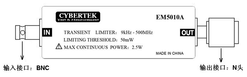 注意接口方向,不能接反,否則可能會損壞機器。BNC 為輸入接口,N 頭為輸出接口。
