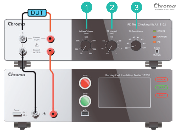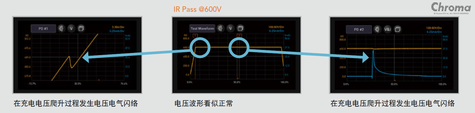 Chroma 11210使用特殊電路設(shè)計(jì)提供PD偵測(cè)功能,全程監(jiān)測(cè)測(cè)試過程中電芯內(nèi)是否曾經(jīng)發(fā)生過因局部異常放電而產(chǎn)生的異常電氣閃絡(luò)并量化為可視程度并同時(shí)記錄波形。在達(dá)到測(cè)試電位后,測(cè)試時(shí)間內(nèi)也會(huì)與一般耐壓或絕緣測(cè)試器一樣進(jìn)行漏電流或絕緣電阻值測(cè)量判定異常。+瞬時(shí)高壓測(cè)試(+Flash)功能提供兩階段間斷式高低電壓,分別檢測(cè)待測(cè)物在高壓時(shí)耐壓特性以及低壓下漏電流表現(xiàn),獨(dú)立的判定漏電流大小以及PD檢出功能,可以有效作用于各種儲(chǔ)能元件。