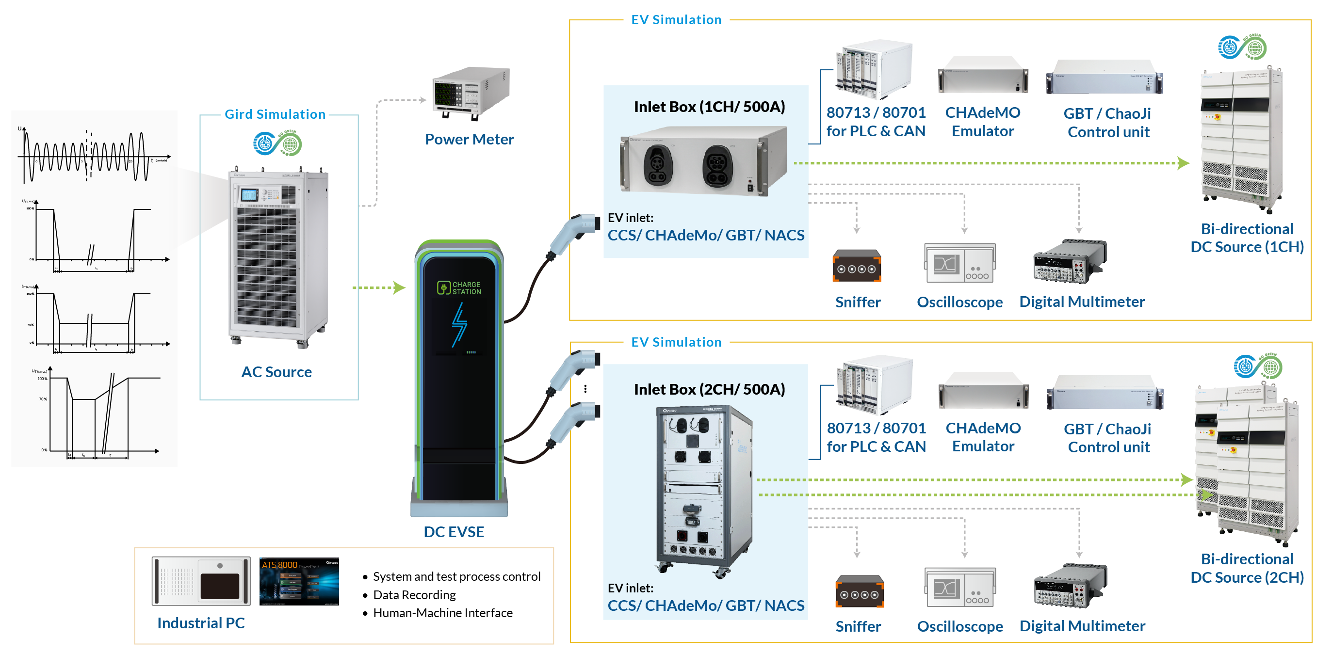 Chroma提供的電力電子及各國充電測試接口,提供全面的測試解決方案。