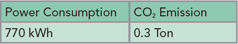 - * 0.35kW x 30hrs x 30days x 12months = 2,520kWh;2,520kWh x 0.387kg = 975kg
