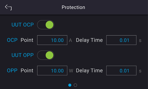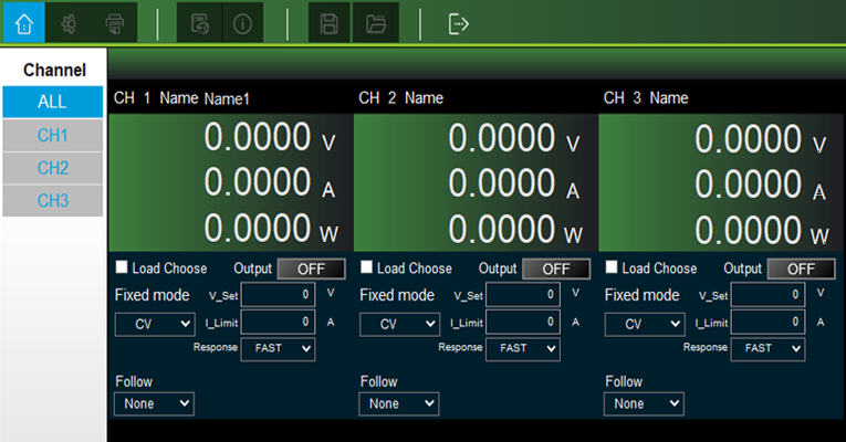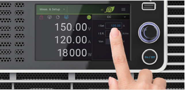 手動操作部分,采用5吋的彩色觸控螢?zāi)唬赏瑫r顯示量測值與設(shè)定值,友善的人機接口讓用戶有更直覺的操作體驗,除觸控螢?zāi)煌猓脖A魧嶓w旋鈕與負載開關(guān)按鍵,可精準快速的進行微調(diào)設(shè)定。