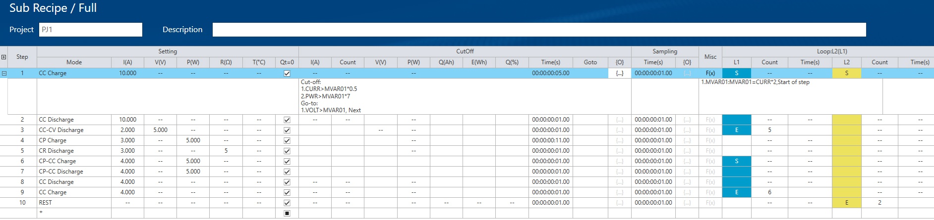 - 測試步驟:CV/CC/CP/CC-CV/波形電流/DCIR